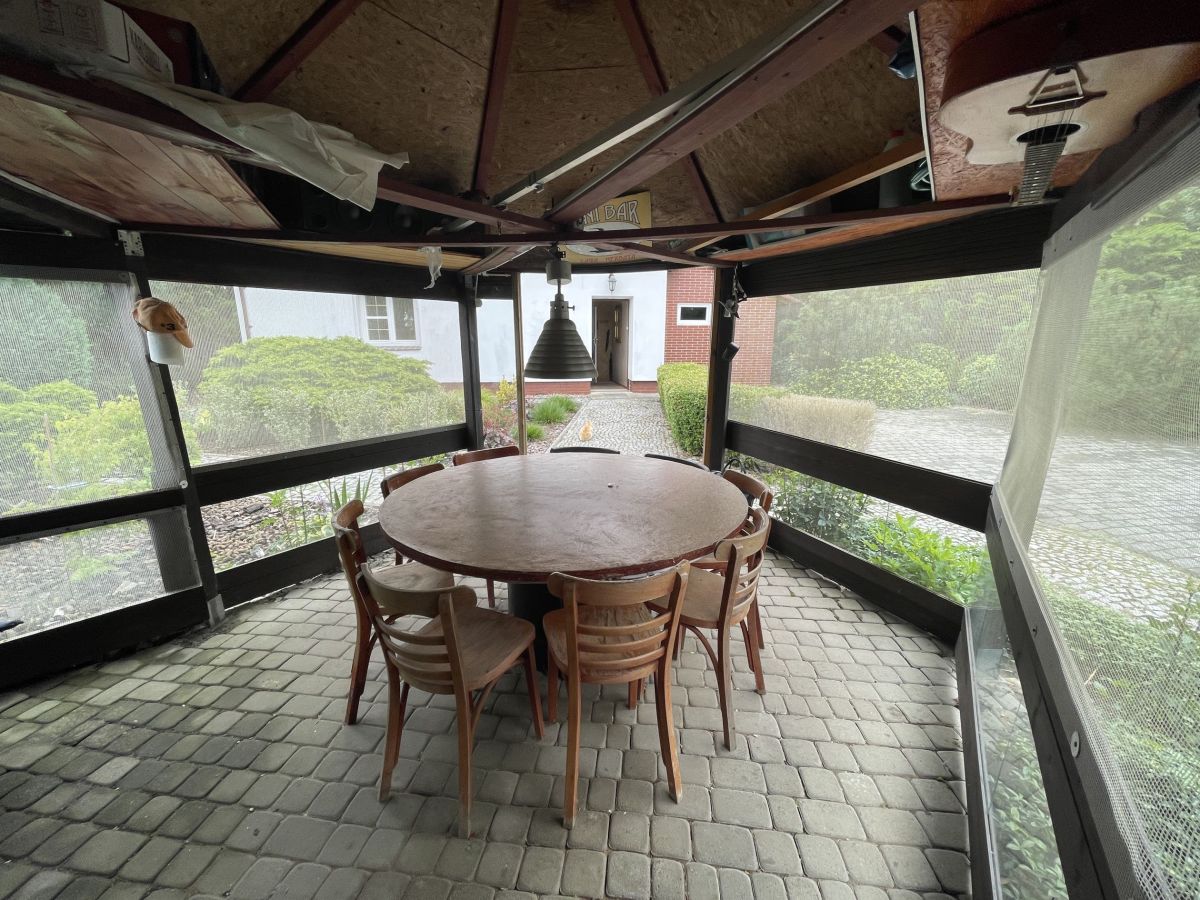Na ogrodzie znajduje się niewielki zewnętrzny basenik, przygotowane miejsce pod grilla oraz ogród zimowy.