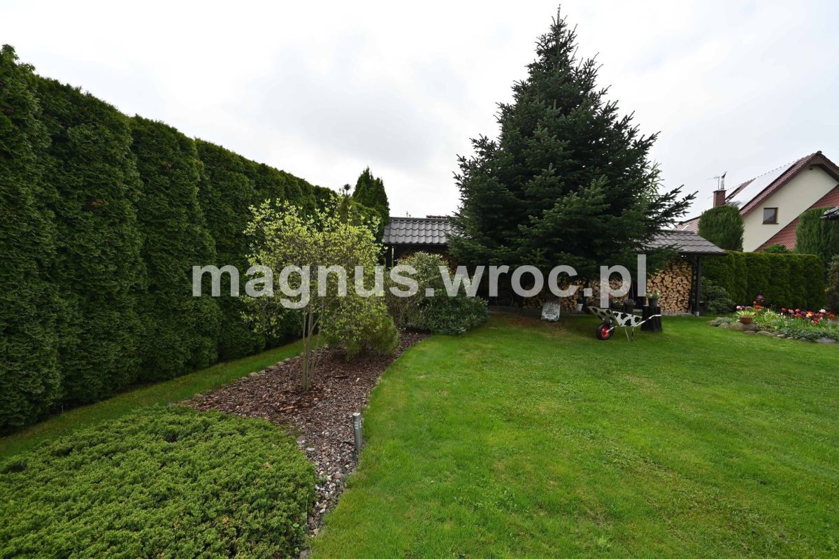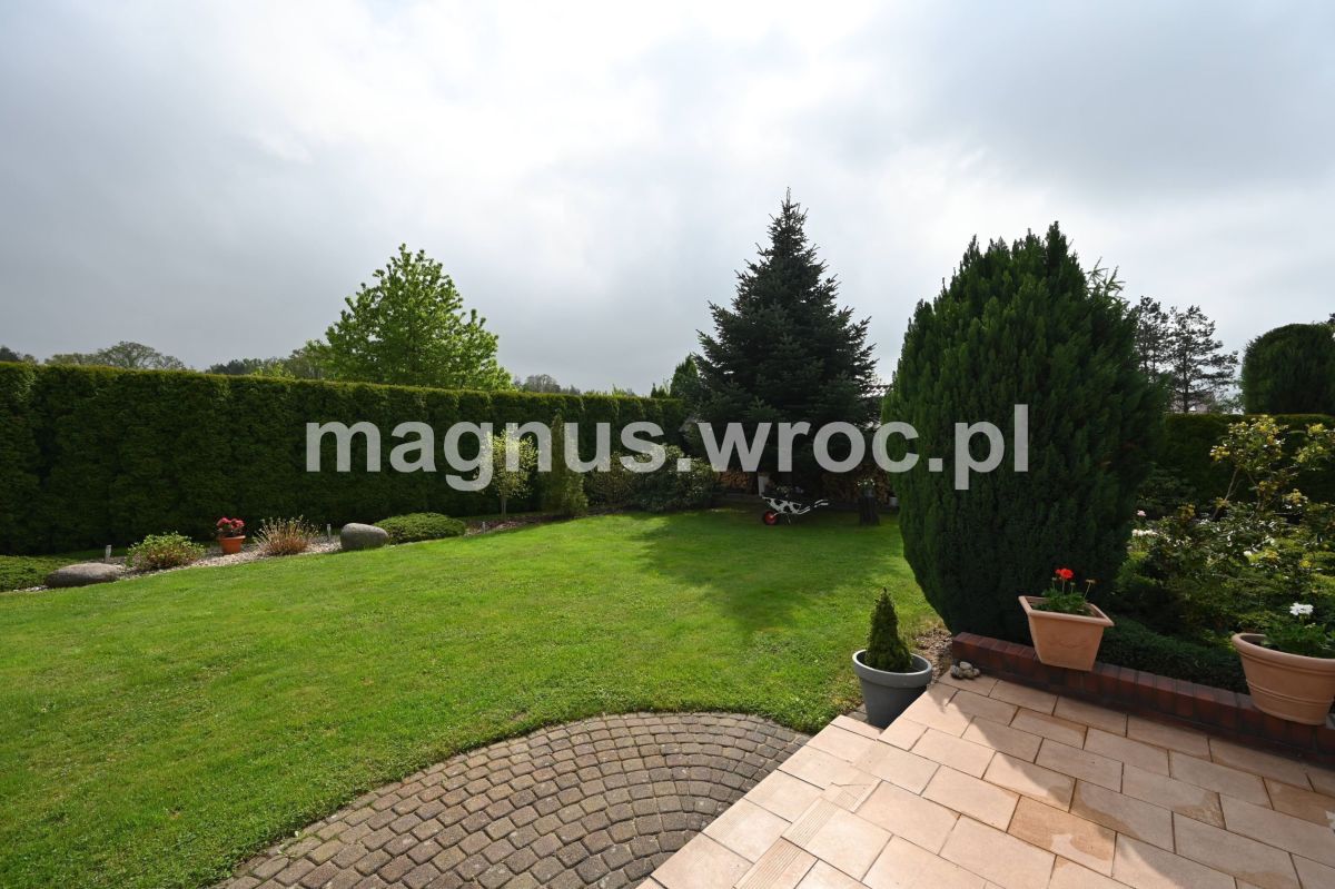Zadbany, funkcjonalny dom został posadowiony na przestronnej działce o powierzchni 969 m², w pełni ogrodzonej i otoczonej wysokim szpalerem tuj (3 strony), zapewniającym prywatność i komfort. Nieruchomość znajduje się na spokojnym osiedlu domów jednorodzinnych, niedaleko terenów leśnych, a jednocześnie z doskonałym dojazdem do Wrocławia. To idealne miejsce dla rodzin ceniących ciszę, naturę i wygodę.