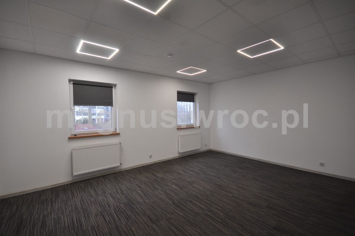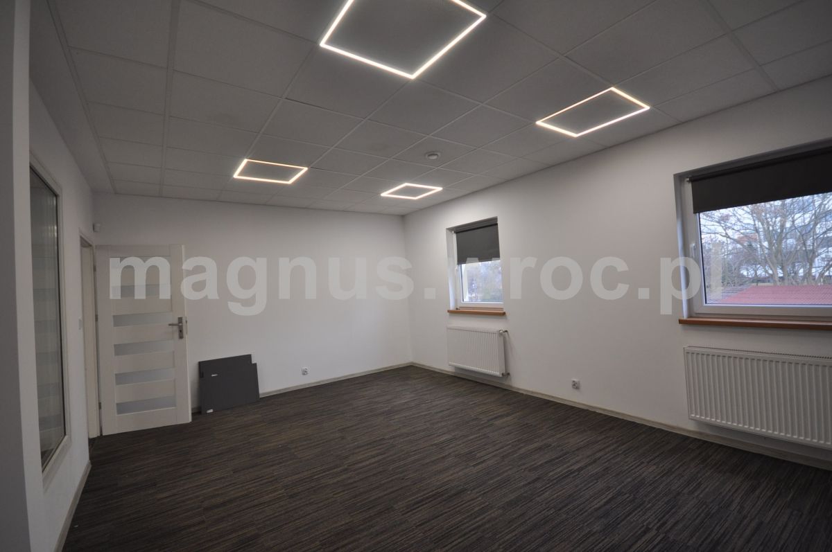 Lokal odświeżony, z nowoczesnym oświetlaniem sufitowym, wykładzina na podłodze, okna z roletami zapewniające naturalne światło.